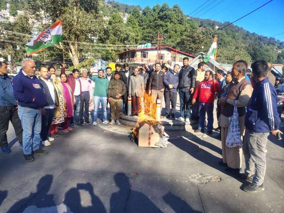 नैनीताल। सरोवर नगरी नैनीताल में नगर कांग्रेस कमेटी, द्वारा एक 16 वर्षीय नाबालिक बालिका को भगाने व दुष्कर्म करने के आरोपी भारतीय जनता पार्टी के सक्रिय कार्यकर्ता भाजयुमो के पूर्व जिला मंत्री/पूर्व मंडल महामंत्री देव सिंह बगड़वाल का पूतला फूंक कर शासन-प्रशासन से आरोपी के खिलाफ कठोरतम कार्रवाई व निष्पक्ष जांच के लिए तल्लीताल डांठ पर प्रदर्शन किया गया।
